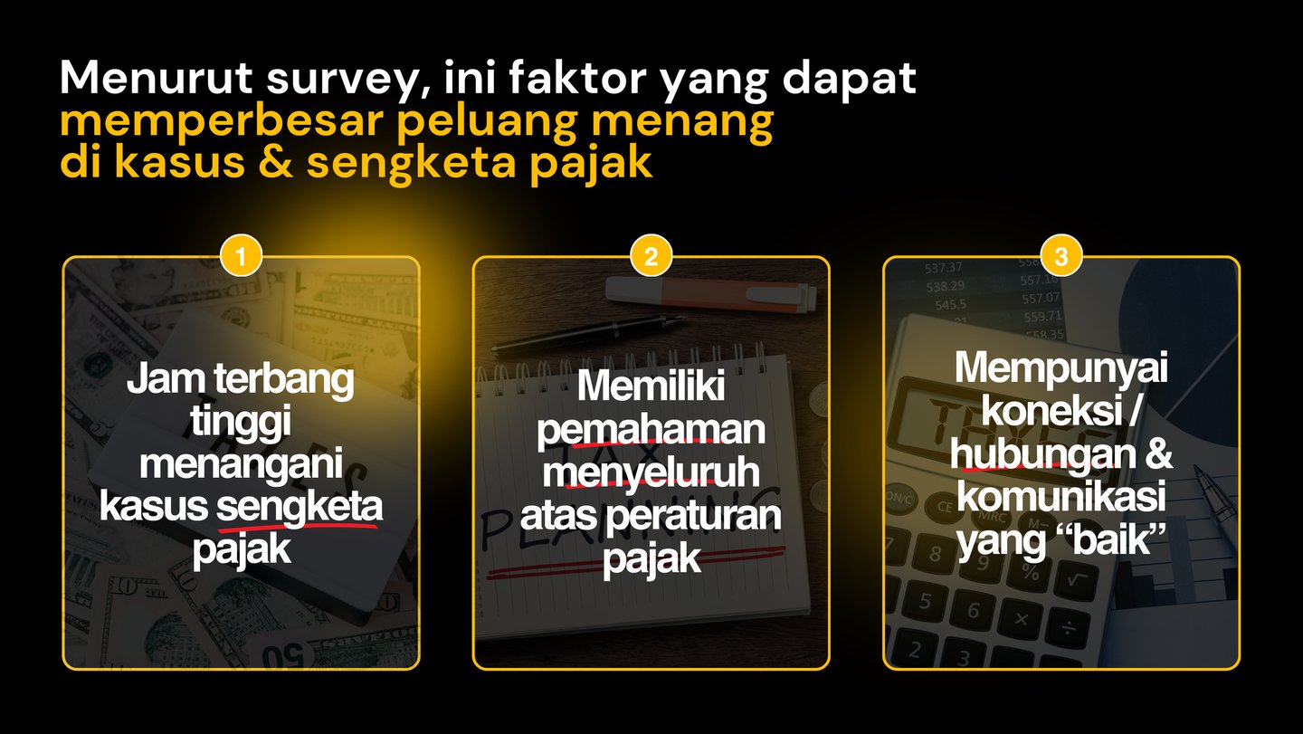 Menurut survey, ini faktor yang dapat memperbesar peluang menang di kasus & sengketa pajak